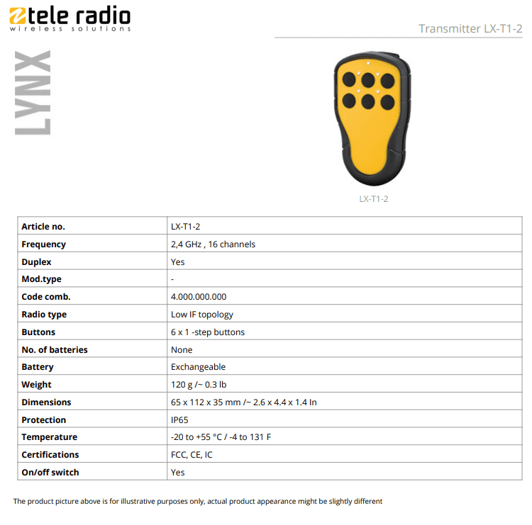 • LX-T1-2 Lynx, transmitter, 6x1-step buttons, TELE-RADIO