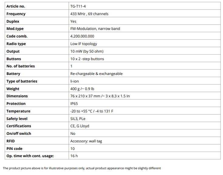 • TG-T11-4 433 MHz Tiger G2, transmitter, 10x2-step buttons, display, SIL3, PLe, TELE-RADIO