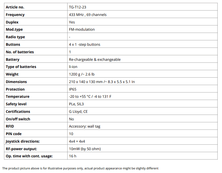 • TG-T12-23 Tiger G2, 433 MHz 69 channels ,4x4 + 4x4, PLe, SIL3 TELE-RADIO