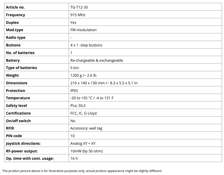 • TG-T12-35 Tiger G2, 915 MHz transmitter, analog xy + xy, PLe, SIL3, TELE-RADIO