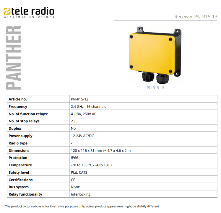 • PN-R15-13 Panther, receiver, 4 function relays, TELE-RADIO