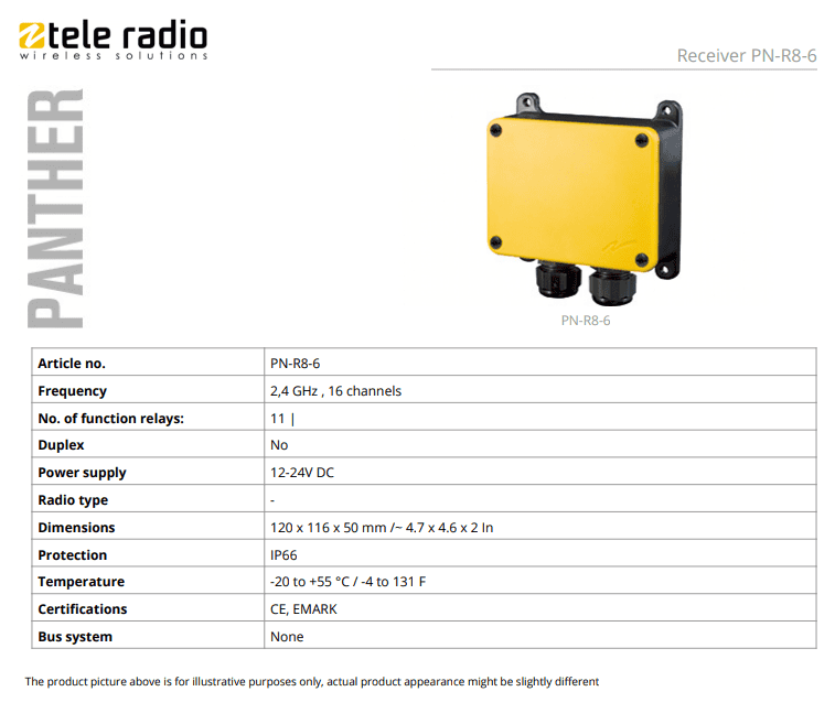 • PN-R8-6 Panther, receiver, 11 function relays, TELE-RADIO